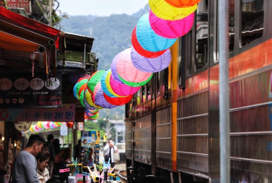 十分老街 : 主要特色在於老街和火車鐵軌是相連的,可以體驗「火車門前過」的新奇感受,以及走在鐵軌旁逛街的趣味,也是很多電影、偶像劇取景的知名景點,老街上的飲食店、天燈工藝品店依舊人潮滿滿,也是國際遊客拜訪台灣必訪之景點。