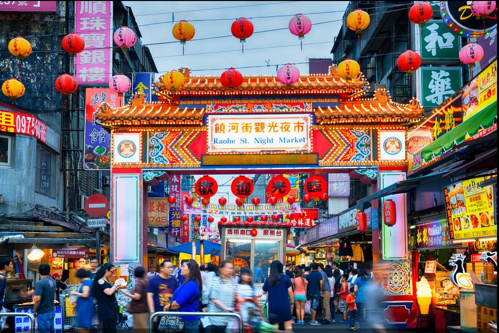 饒河街夜市 : 夜市內有許多非吃不可的美食,像是曾獲得米其林推薦的知名蚵仔麵線,滷大腸爽口又脆、相當入味;香噴噴的藥燉排骨,加入中藥秘方,沒有腥羶味,是冬天疏通筋骨、滋補養身聖品;販賣各種滷味的東山鴨頭,肉質有彈性,冰過更好吃;鮮嫩十足的蟹腳蟹肉、好喝的古早豆花,各種新奇美味的小吃多到數不完。
